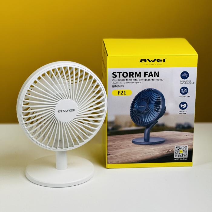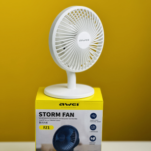 The Awei F21 Mini Rechargeable Fan is a small, portable fan that can be used to cool you down on hot days. It has a 2000mAh battery that can provide up to 4 hours of run time on a single charge. The fan has 4 different wind speeds, and it can also be used as a USB charging treasure.